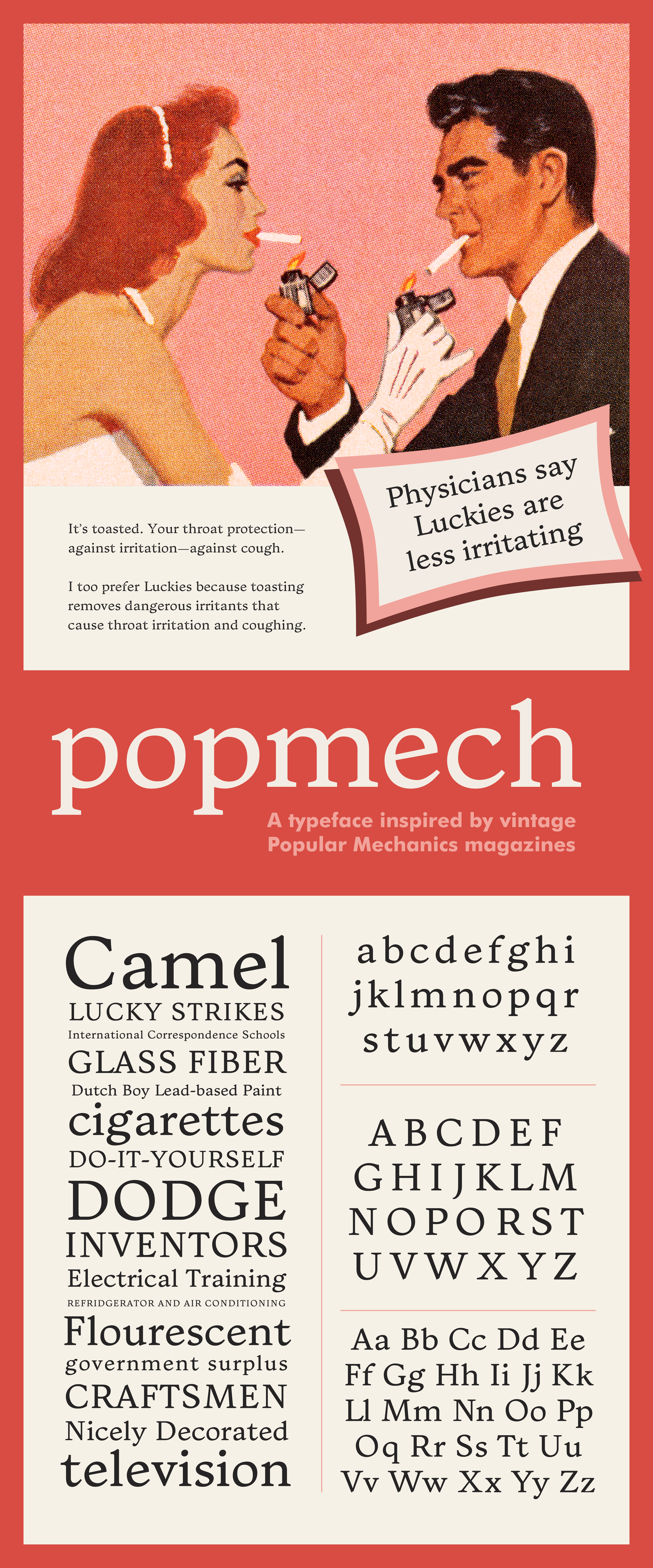 Text typeface inspired by vintage Popular Mechanics Magazines and created while at Type@Cooper’s Condensed program in 2018